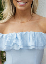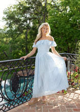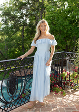 Coastal Blue Off Shoulder Corset Maxi Dress