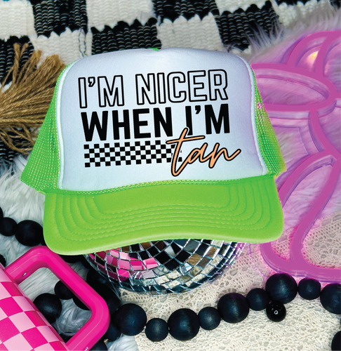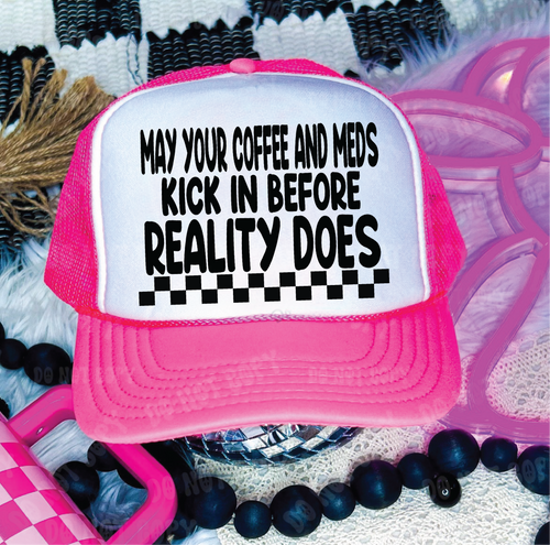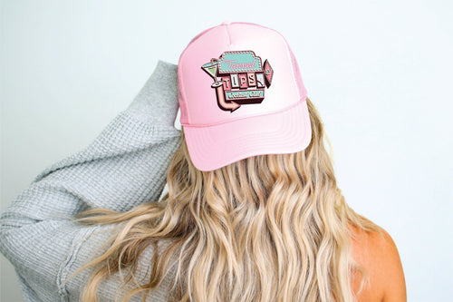LOVE GINGHAM PRINT DTF Printed Light Pink Trucker Hat