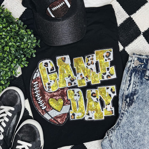 Baseball Leopard Game Day Sequin Patch Black Sweatshirt