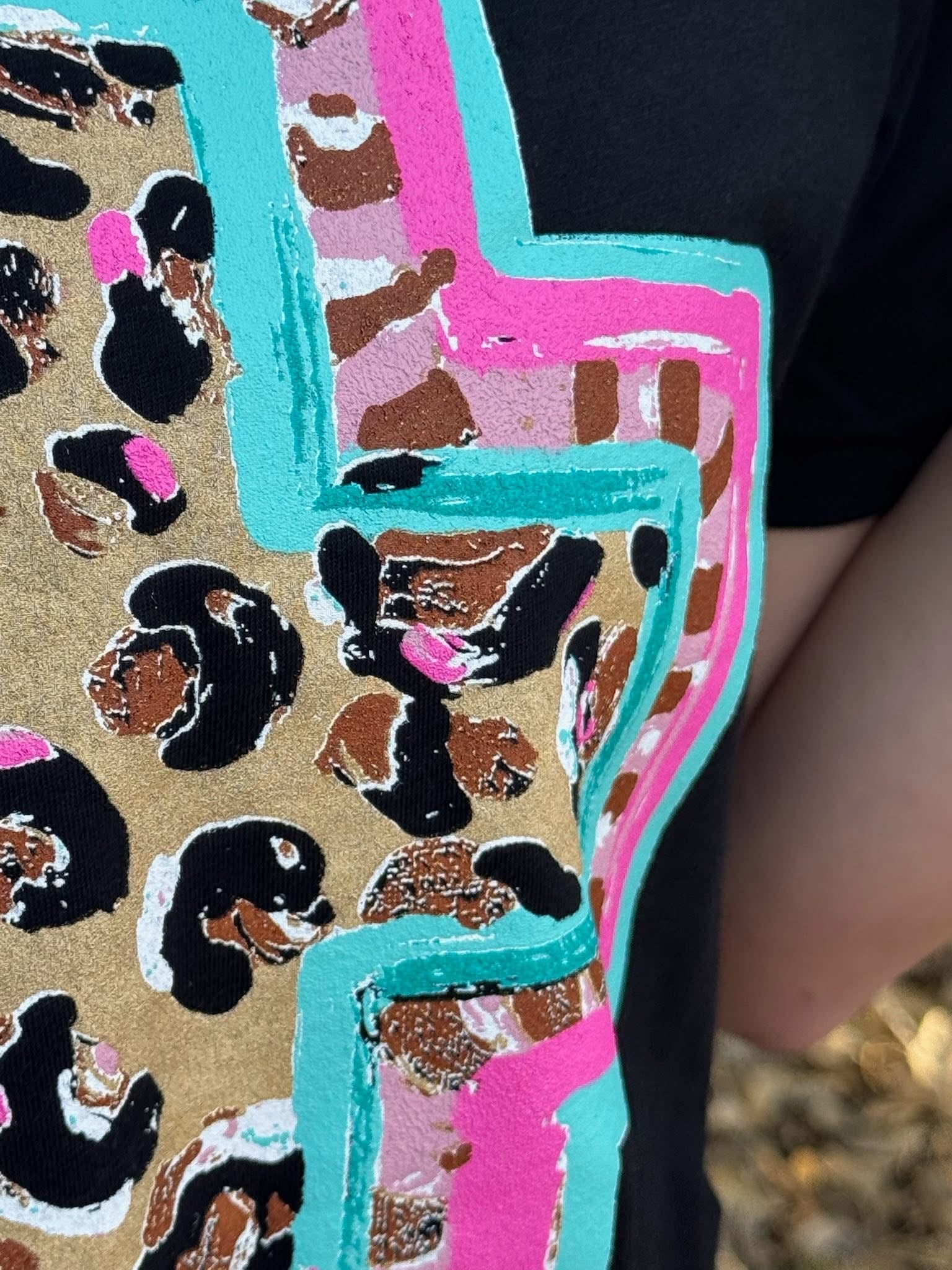 Callie Ann Spring Time Leopard Cross Black Tee