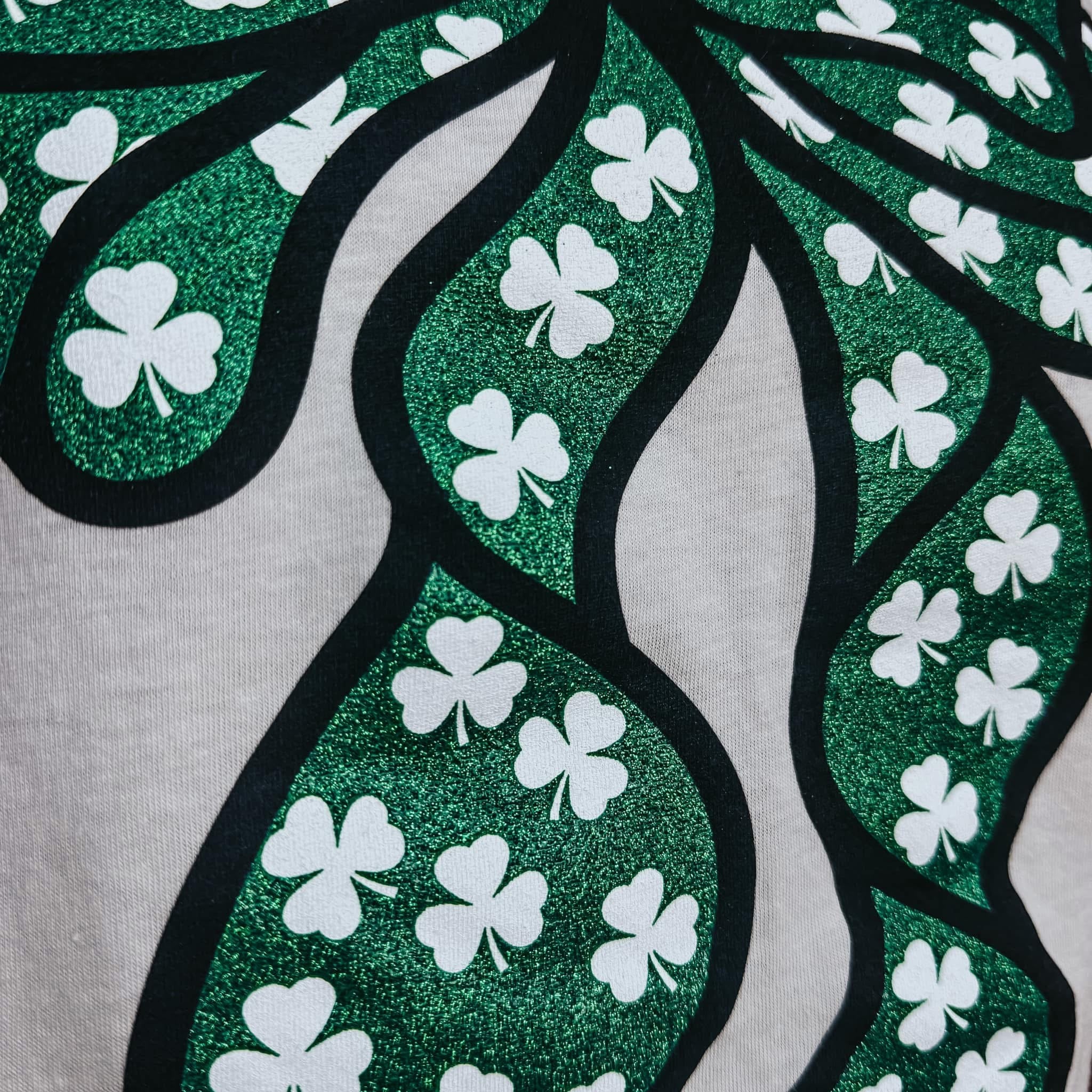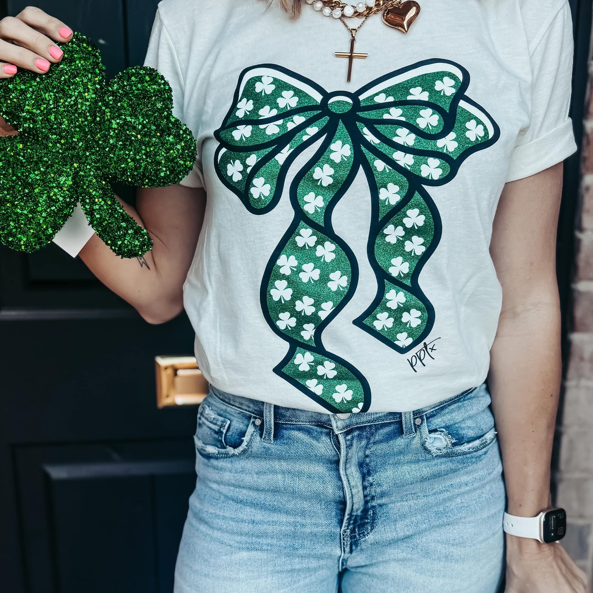 Shamrock Green Glitter Bow Vintage Natural Tee