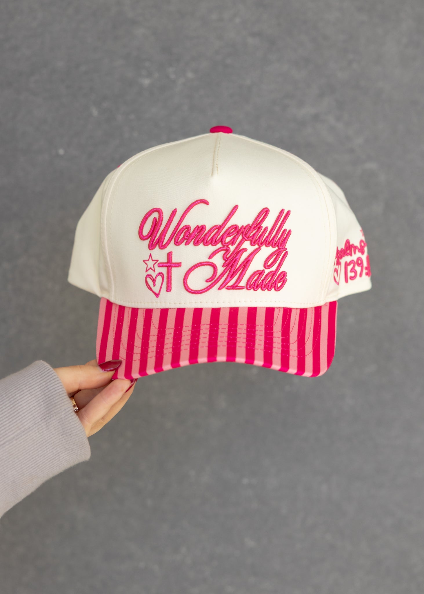 Wonderfully Made Pink Stripe Trucker Hat