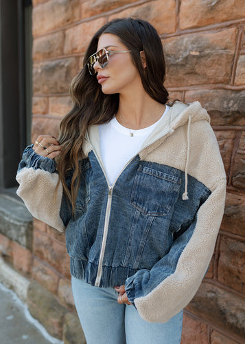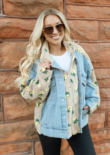 Floral Shearling & Denim Jacket