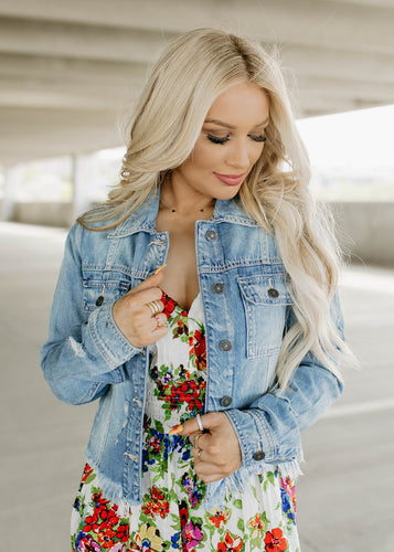 Birdie Distressed Denim Jacket - Kelly Green