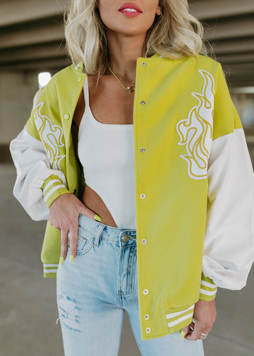 Birdie Distressed Denim Jacket - Lime Green