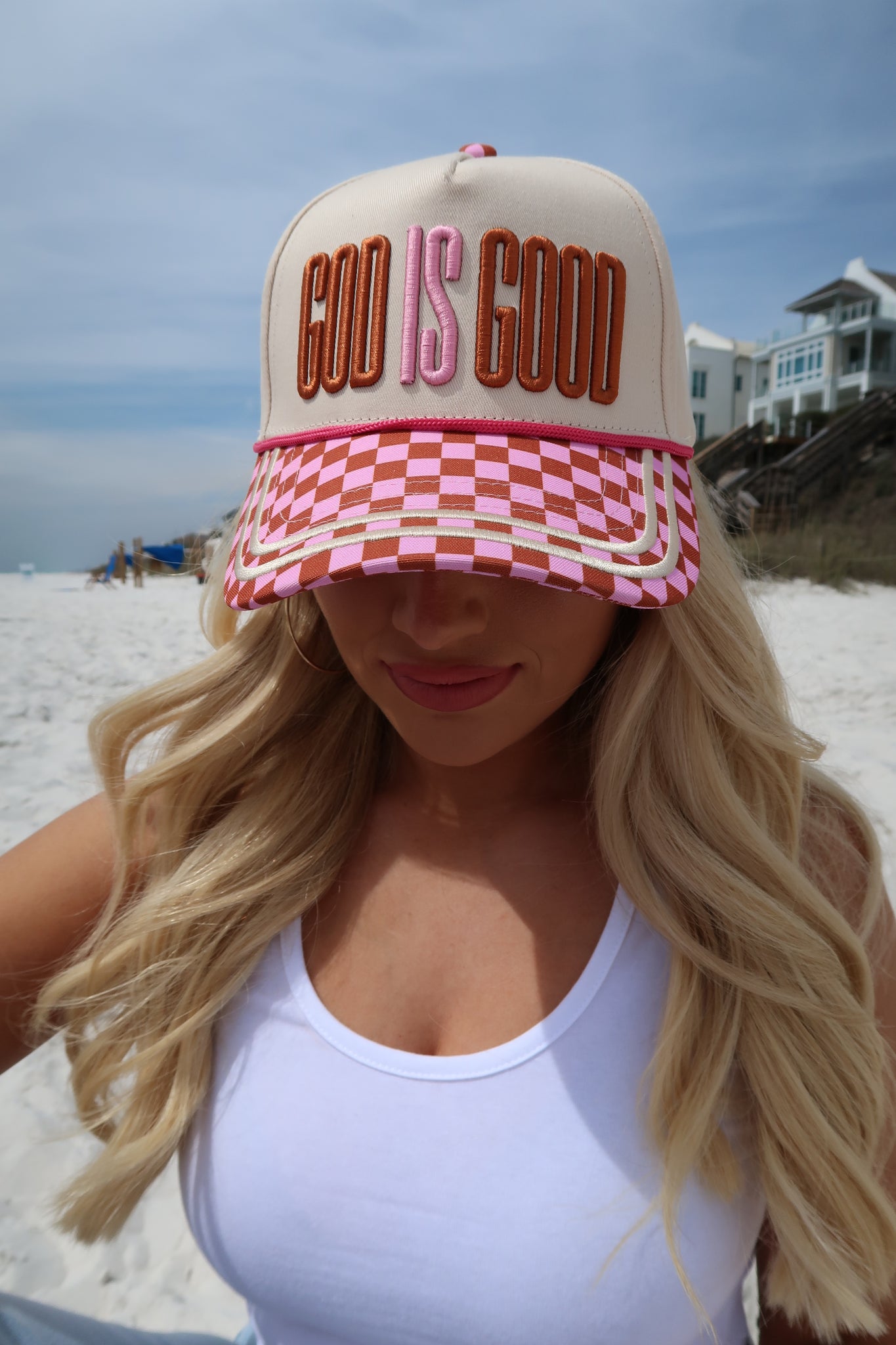 God Is Good Checkered Trucker
