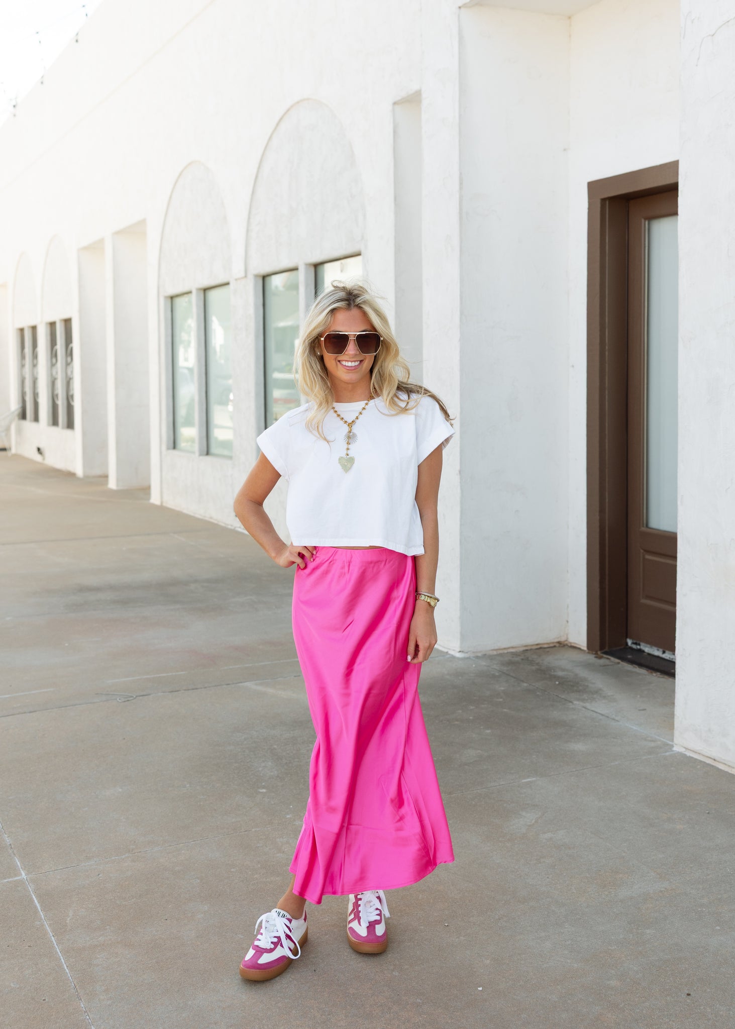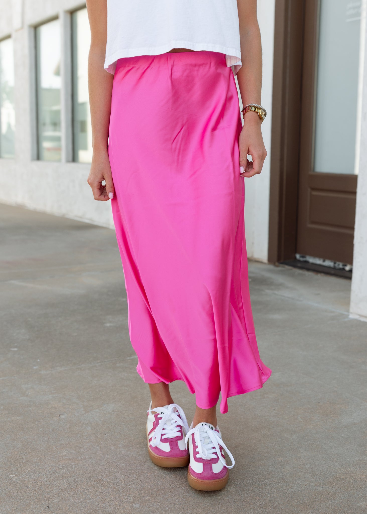 Miley Fuchsia Satin Midi Skirt