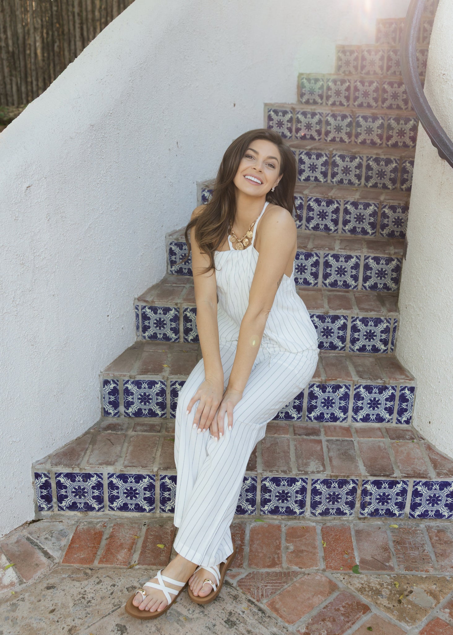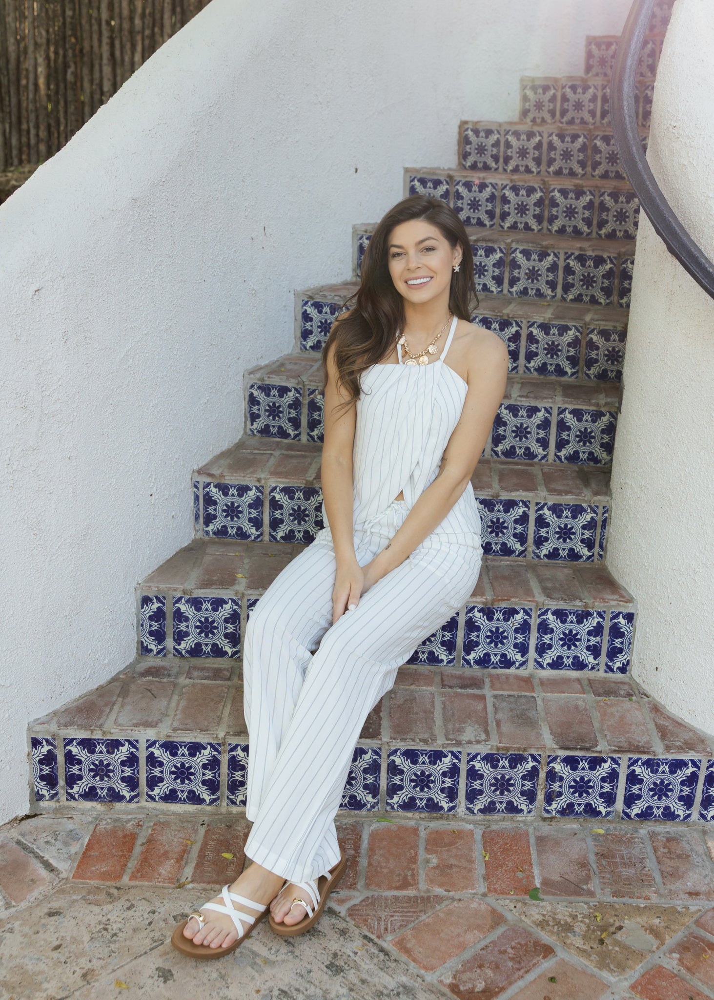 Chic Linen Stripe Halter Top & Pant Set