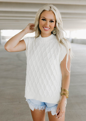 Coastal Weave Cropped V Neck Top