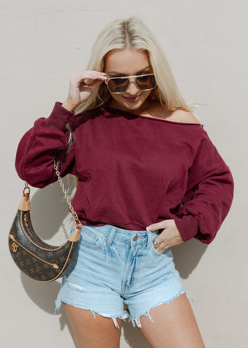 Alina Burgundy Off The Shoulder Cropped Sweatshirt