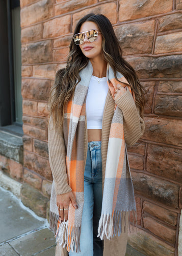 Autumn Color Block Fringe Scarf - Orange