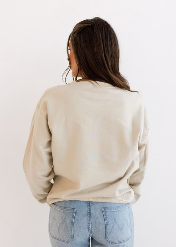 This design is direct to garment printed on a Sand sweatshirt (Tultex or Gildan brand) or a Cream tee (Bella Canvas brand). Sweatshirts are long sleeved while tees are short sleeved- both with a rounded neckline & true to size with a unisex fit. Tees are made up of 100% Cotton, Sweatshirts are 80% Cotton & 20% Polyester.