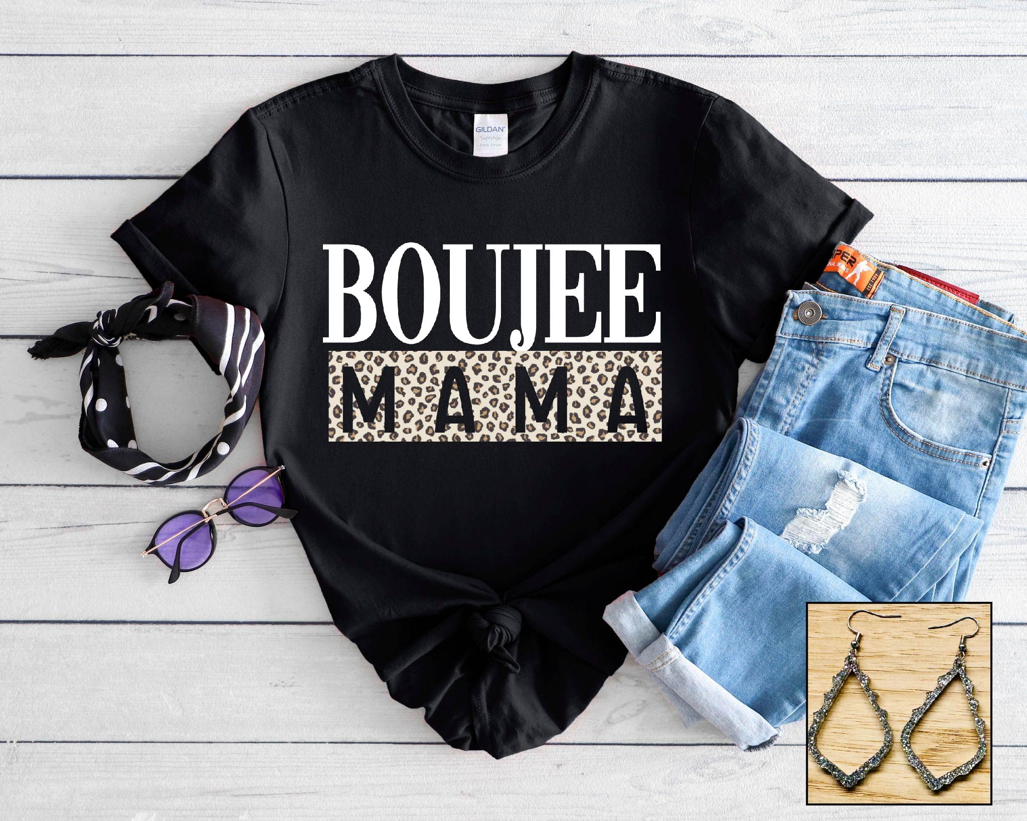 This tee pairs perfectly with our Silver Glitter Scalloped Dangle!