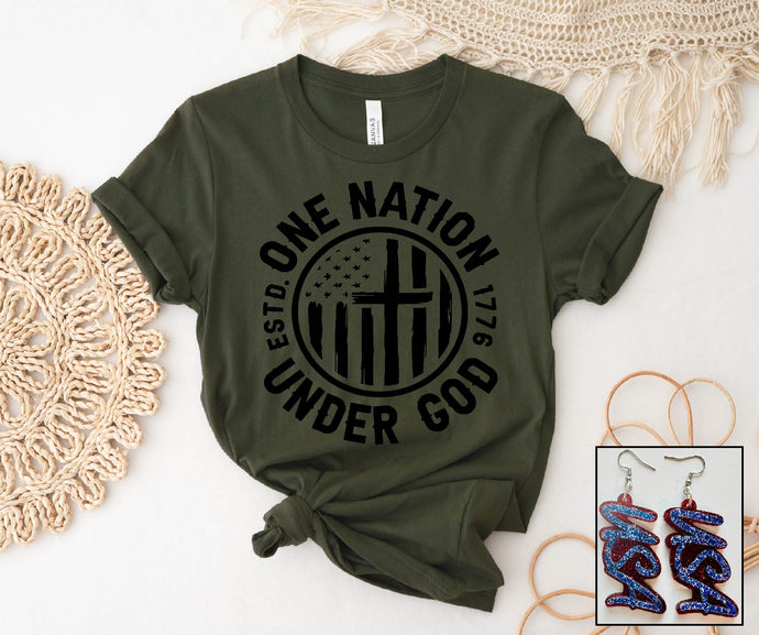 This design is direct to garment printed on a Military Green tee (Bella Canvas, Next Level, or Cotton Heritage brand). Tees are short sleeved with a rounded neckline & are true to size with a unisex fit. Made up of 100% Cotton.