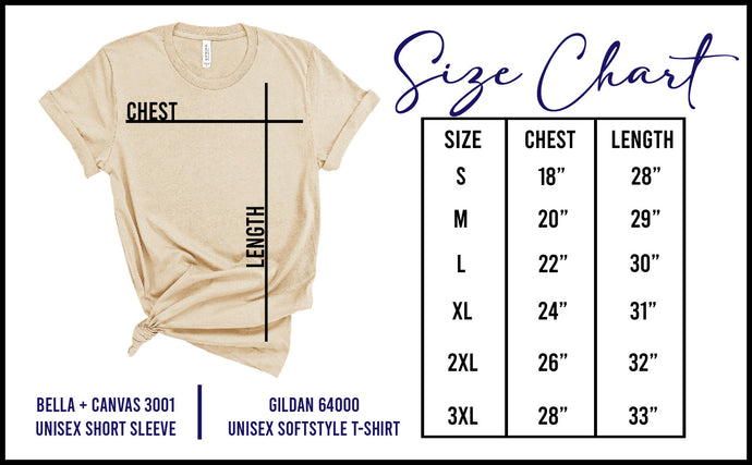 This design is direct to garment printed on a Sand Dune tee (Bella Canvas brand) or a Sand sweatshirt (Tultex or Gildan). Tees are short sleeved with a rounded neckline, and sweatshirts are long sleeved with a rounded neckline. Both are true to size with a unisex fit. Tees are made up of 100% Cotton, Sweatshirts are made up of a 80% Cotton & 20% Polyester blend.
