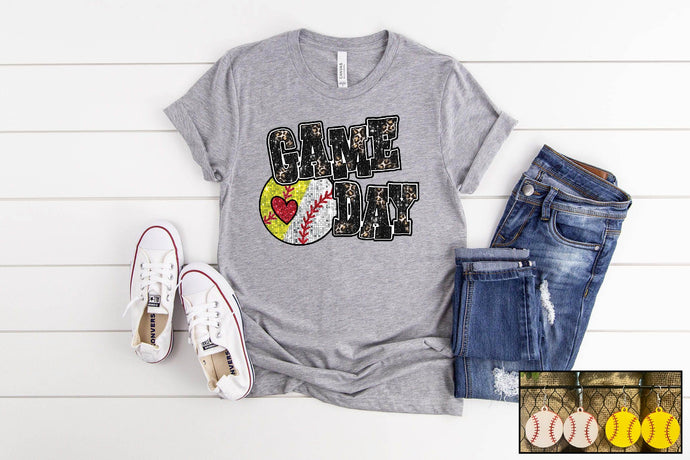 This tee pairs perfectly with our Softball or Baseball Earring!