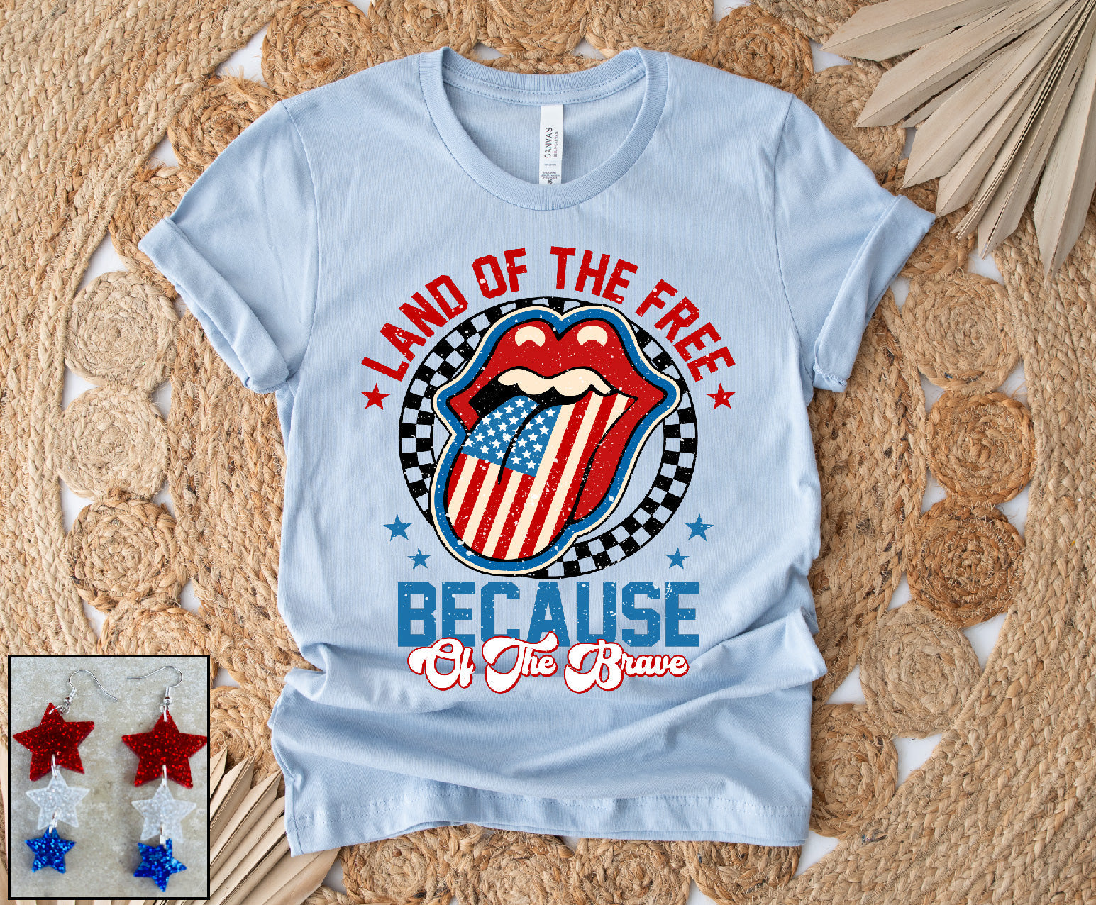 This tee pairs perfectly with our Acrylic Patriotic Star Earring!