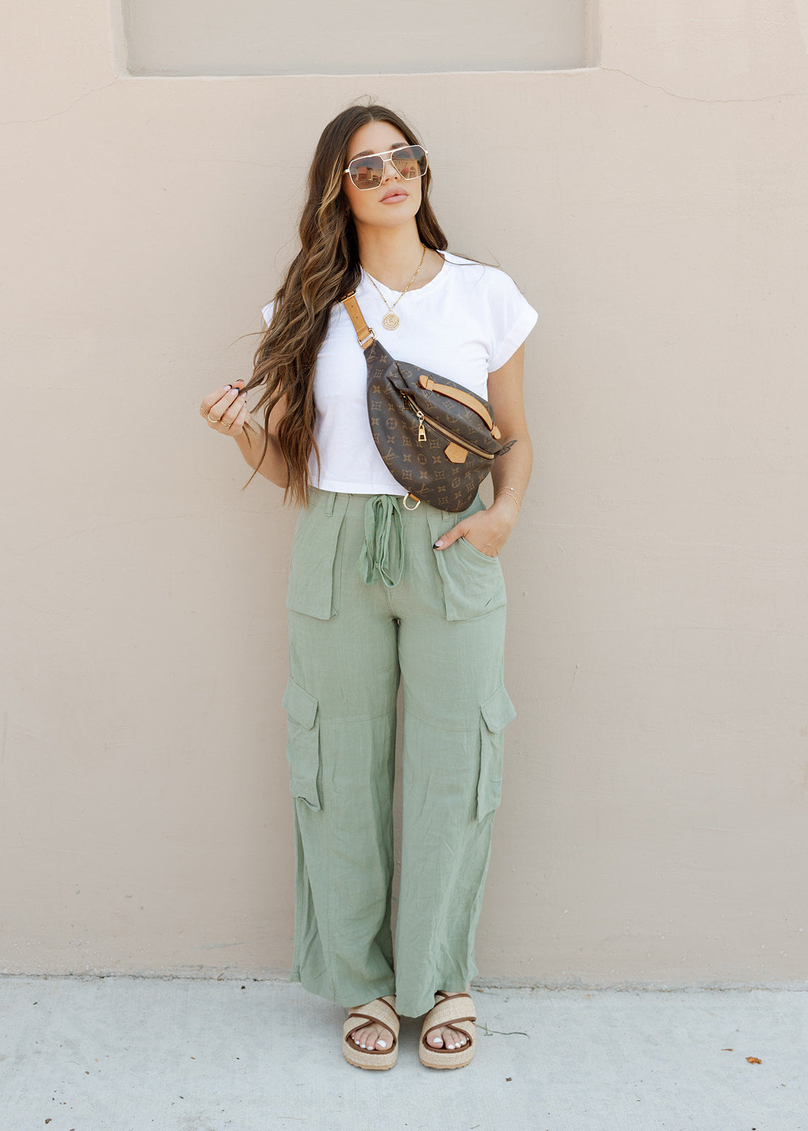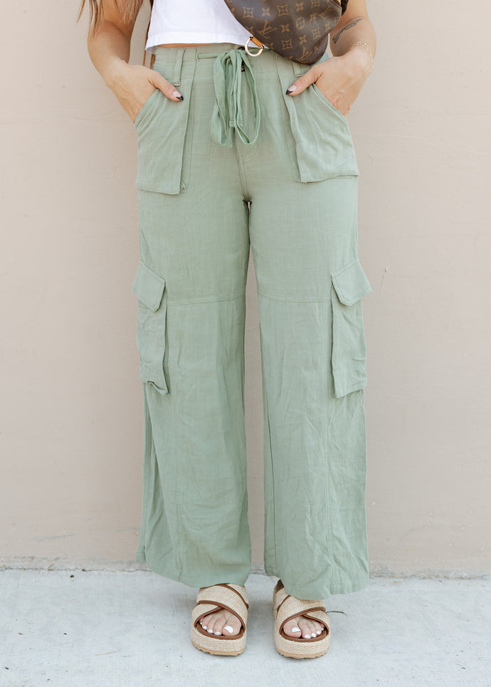 Maya Linen Utility Cargo Pants - Olive
