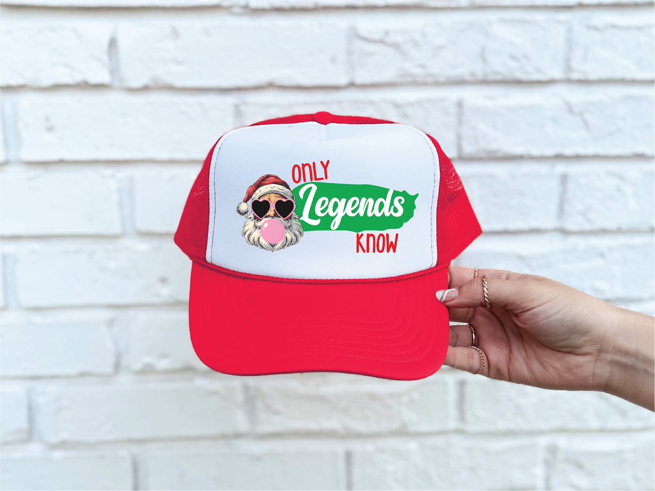 "Only Legends Know" design direct-to-film printed on a Red & White foam trucker hat. The perfect accessory to make a bold statement!