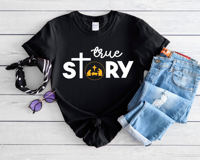 DTG on a Black. *Due to inventory shortages, shirts will either be Bella Canvas, Next Level, or Cotton Heritage* Also available in Long Sleeves!